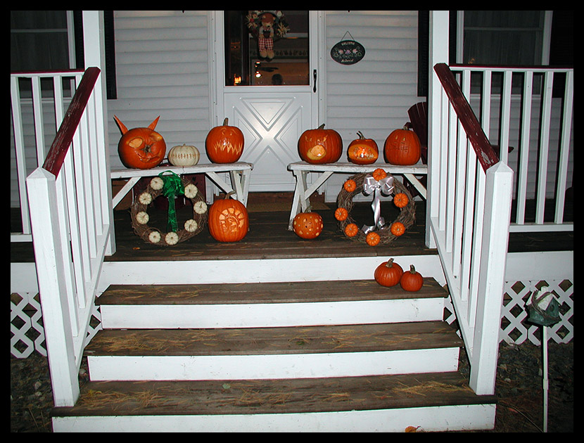 Image 21: Halloween Porch Decoration including eight Jack-o-Lanterns, New Hampshire, 2002. Photograph courtesy of Sean McDaniel