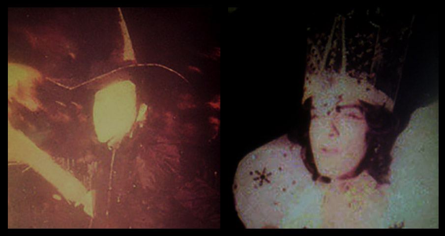 It appears that much of the Halloween house decorations that unequivocally fall into the category of folk art escaped visual record. The image of a child’s birthday party held on Saturday, October 30, 1976 is one of the only visual records of a spectacular Halloween house installation. Here, the entertainment included a spooky walk through the vast dimly lit basement, and an out building bedecked with handmade decorations of ghosts made from bed linens. In the basement elements included a spooky record playing, eyeballs (which were actually peeled grapes) were in a dish for the children to feel, and spiders hanging from the ceiling made out of crepe paper that would brush against party guests so it felt like little things were crawling over them. In addition, bobbing for apples was played, and the birthday girl’s father and uncle dressed as wizards performing card tricks and adlibbing a play about pumpkins and witches. [xvi]